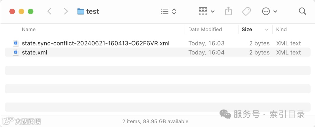 但是,如果你在两台机器上同时修改了状态会发生什么呢?答案是:你会得到一个冲突文件。