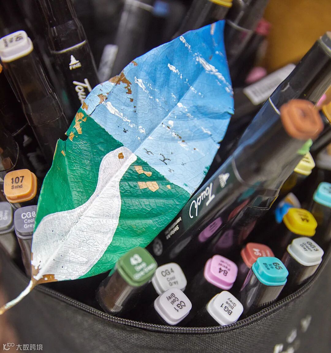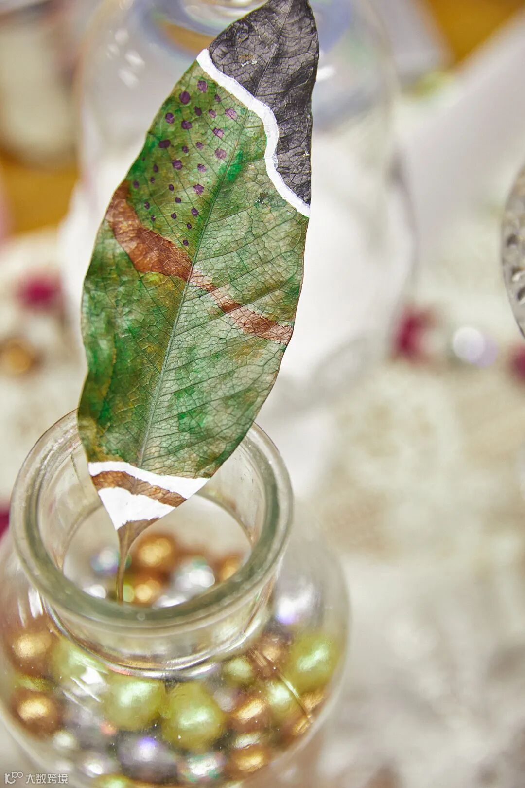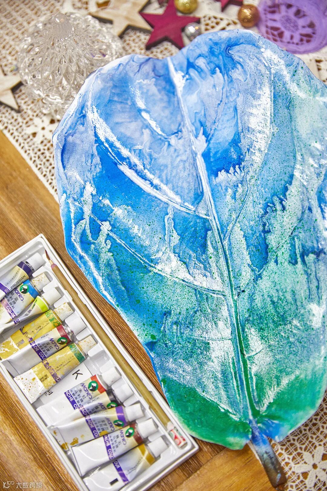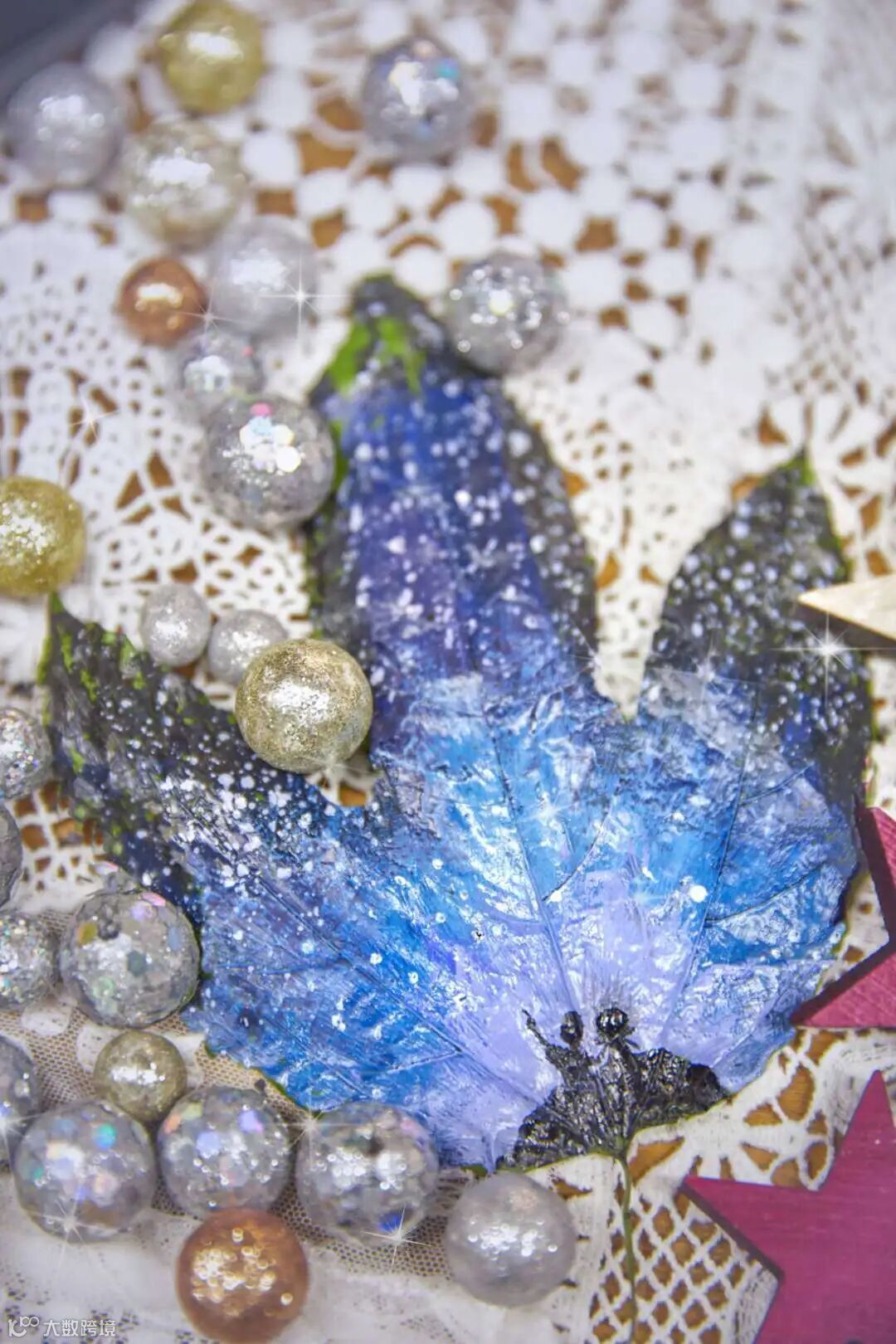 首先在新鲜叶子上做海洋与星空的美妙融合,