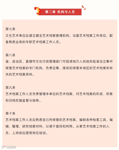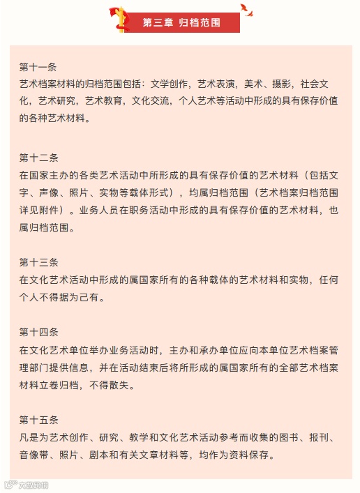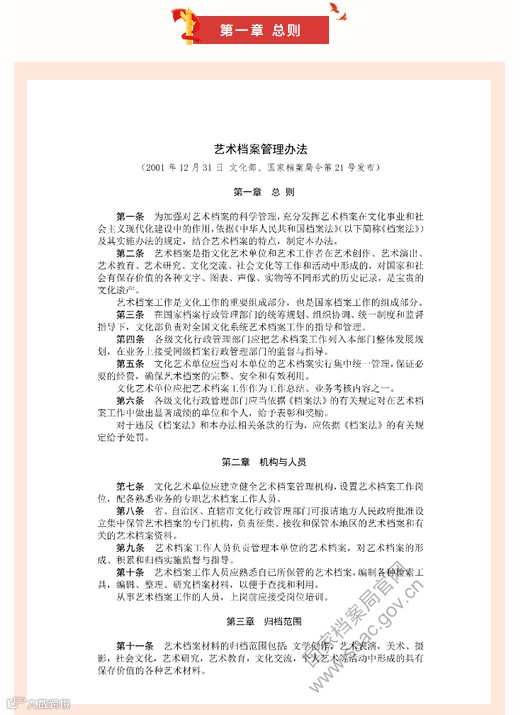 艺术档案工作是文化工作的重要组成部分,也是国家档案工作的组成部分。