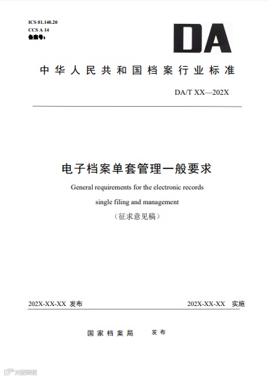 本文件确立了电子档案单套管理的基本原则,规定了实现单套管理需要在制度建设、系统建设、 资源建设与管理、安全管理等方面达到的要求,提出了可行性评估的方式、方法。