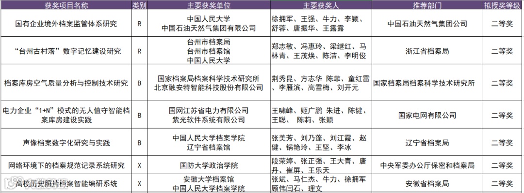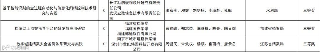 获奖单位:档案馆(局);高校及档案馆;科研机构,企业单位,军队。