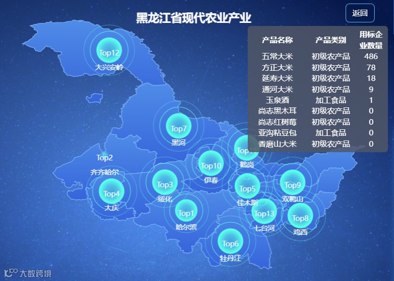 华智数创项目总监黄杰莹围绕黑龙江现代农业产业专利导航项目成果进行了汇报。项目以专利信息为基础,结合产业信息、技术信息和政策信息,梳理了现代农业产业的发展方向,明晰了黑龙江省的产业发展定位,为黑龙江省现代农业产业的发展提供了路径建议,助力黑龙江省政府对现代农业产业高质发展精准施策。同时,项目组还展示了为黑龙江省现代农业产业定制的大屏可视化成果,首次在大屏中展示了黑龙江省的地理标志产品信息以及大豆加工、汉麻和蓝莓三大特色产业的相关信息,展示维度更加多元化。