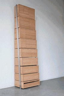 第一眼觉得简单粗暴,第二眼是巧妙好玩。最下面三个抽屉盒拉出来当台阶,高2.6米,收纳盒+楼梯,取衣物不用梯子也不用凳子。同时,超多收纳空间的柜子,往上堆叠节省地面空间。