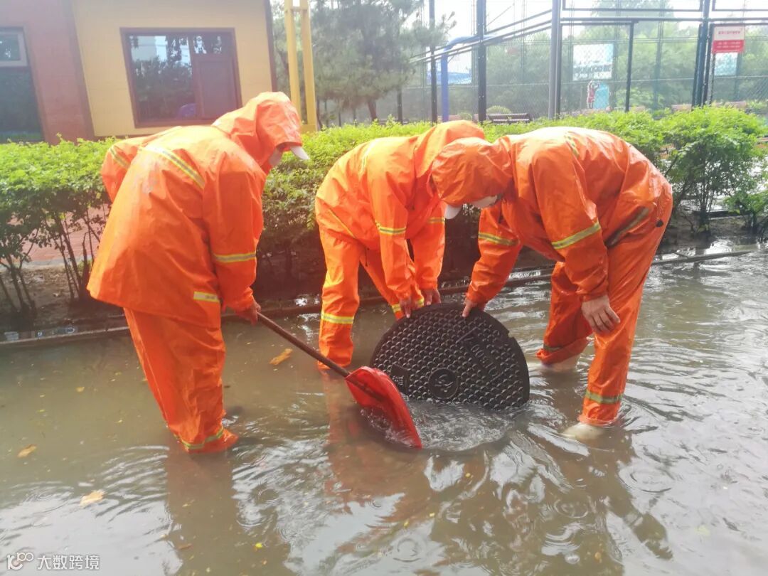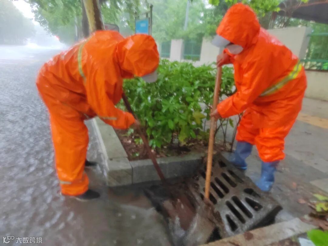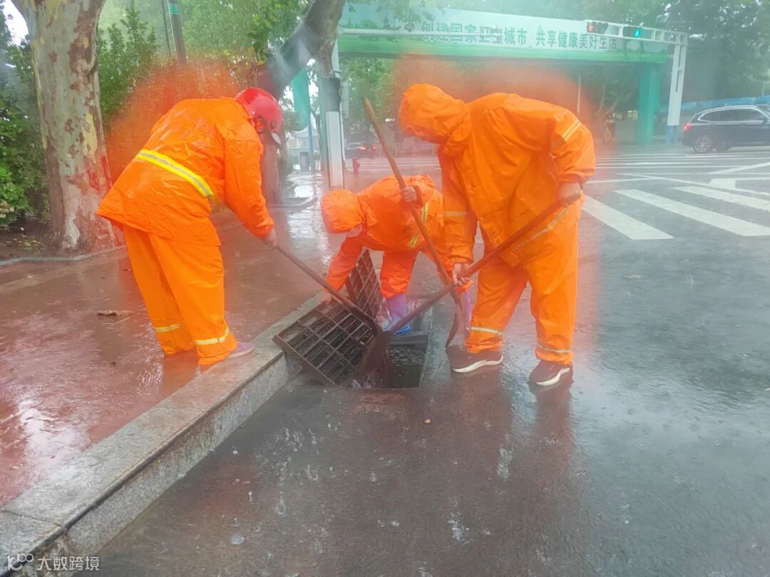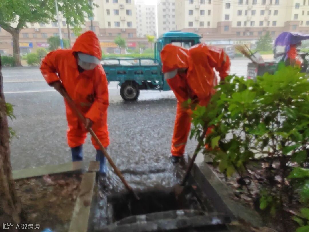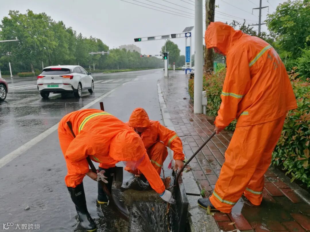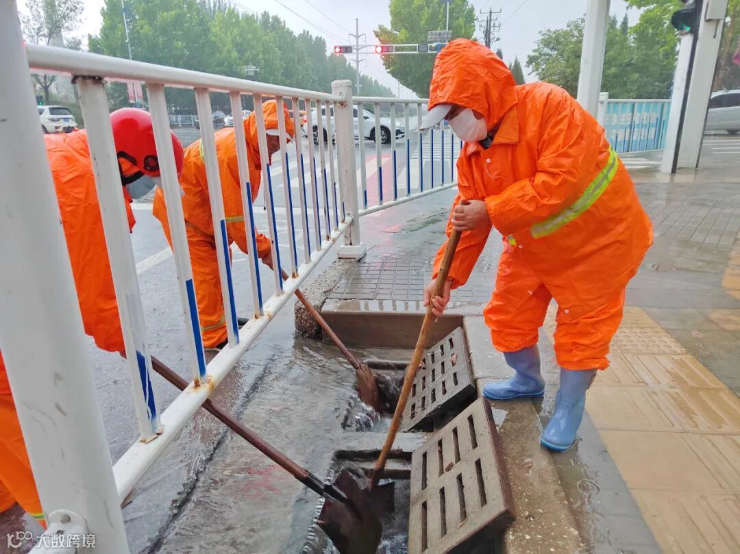 防汛排涝现场,应急防汛领导小组根据雨情汛情适时变化状况,调配排水设备,应急处置队伍立即赶赴积水严重、排水不畅较严重路段,通过“人机结合”作业方式,清理淤泥、疏通下水管道、雨水篦子等排水管网,发现树叶堆积、垃圾堵塞等问题,立即清理,消除隐患。