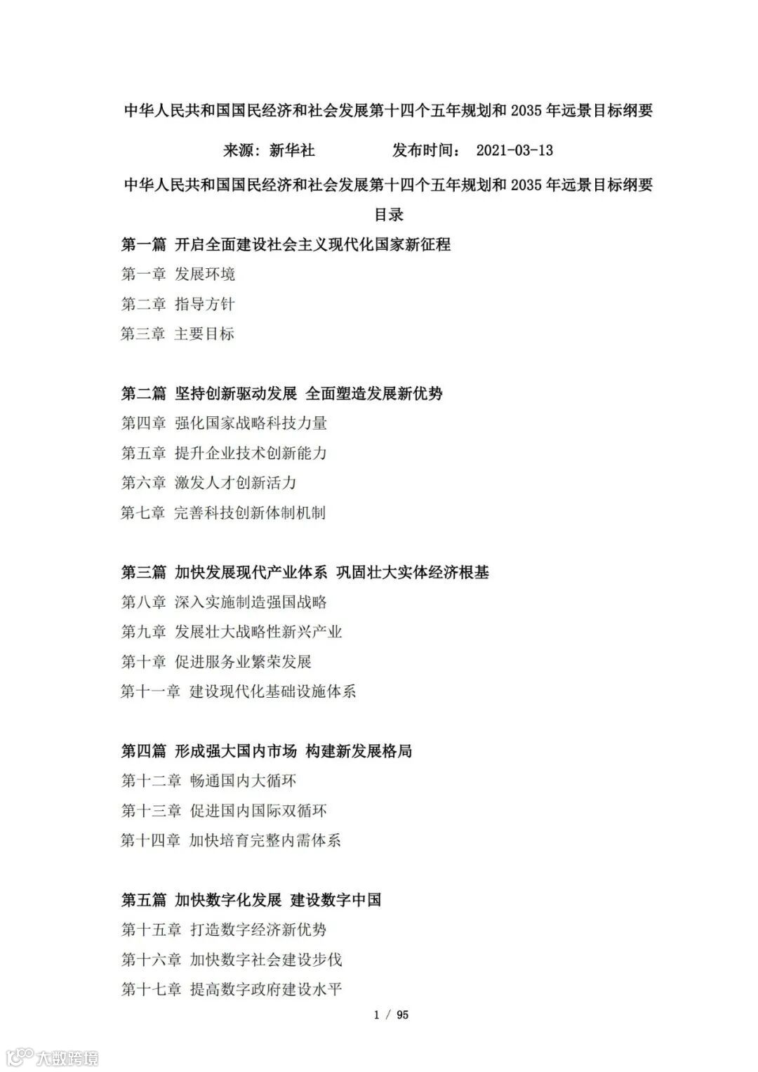 点击阅读原文,查看《中华人民共和国国民经济和社会发展第十四个五年规划和2035年远景目标纲要》全文。