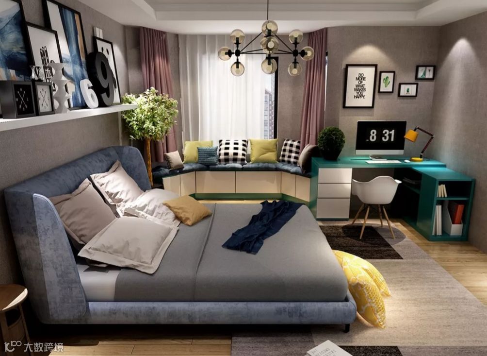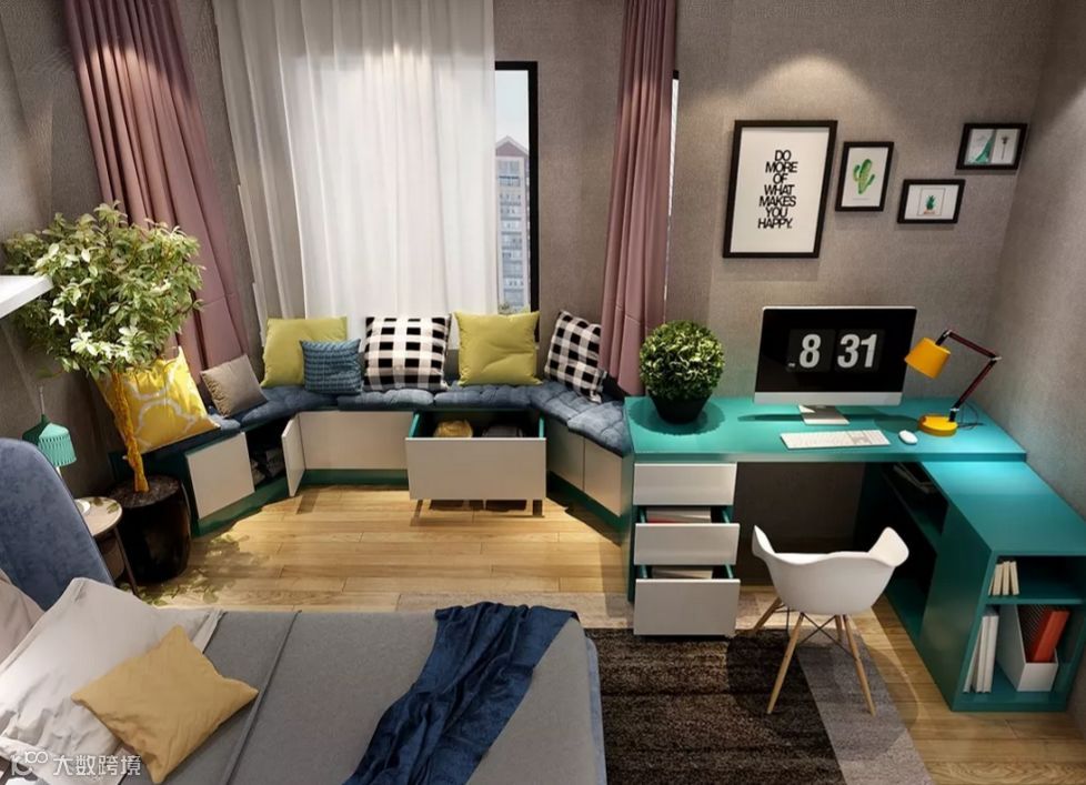 ▲飘窗+榻榻米+书桌:榻榻米和飘窗可谓是黄金搭档,让小卧室变出大容量,装出高颜值!