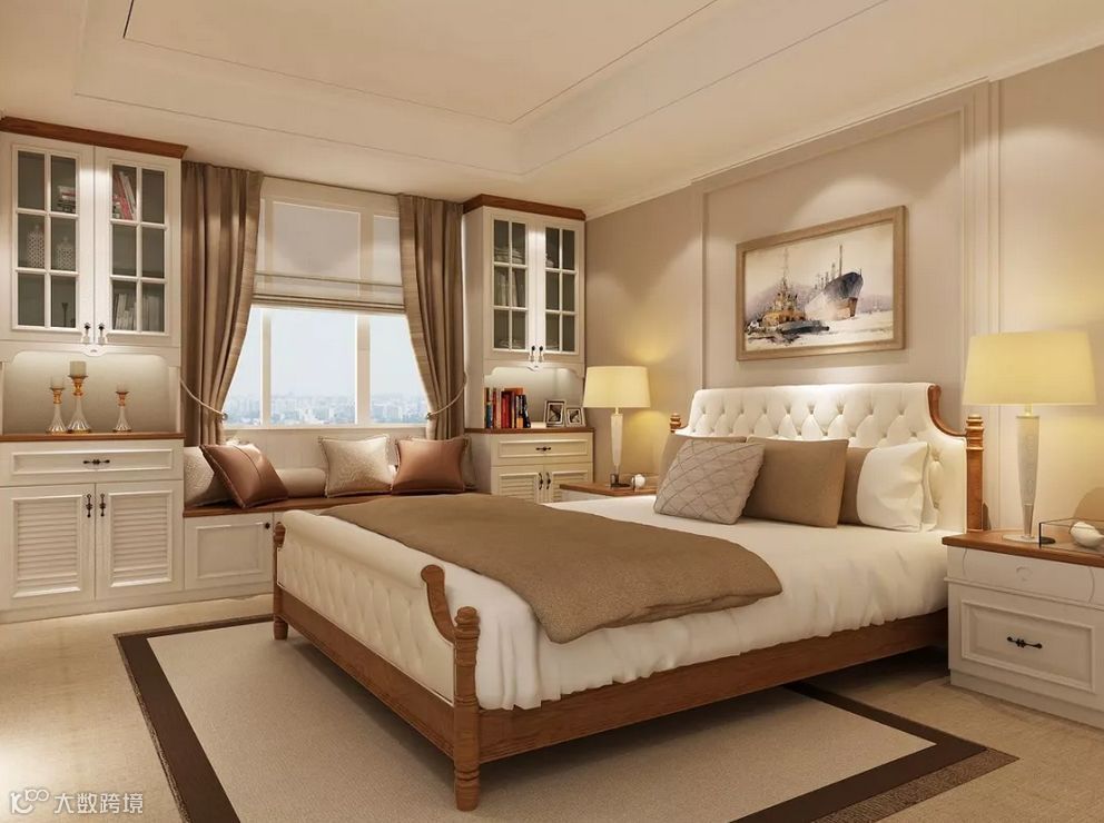 若采光足够好,还可以围绕飘窗在四周定制一体化的柜体,不但拥有令人惊喜的储物空间,还让卧室的容量翻一番,多样化的组合柜让居家更富选择性。