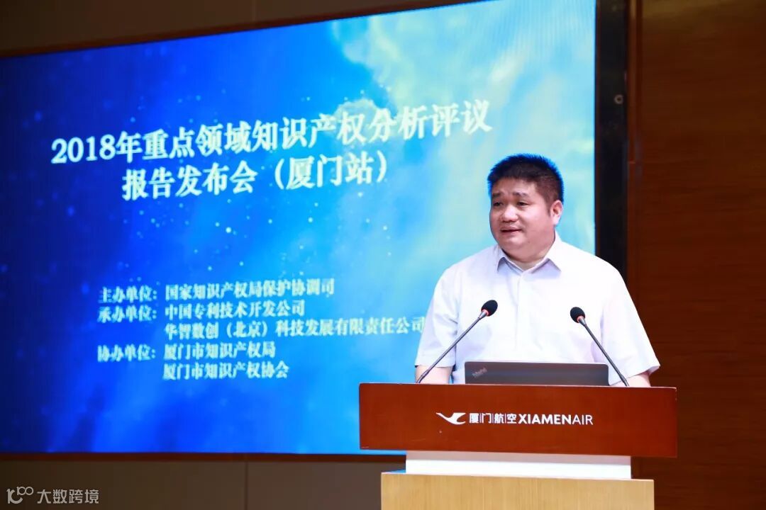 近日,由国家知识产权局保护协调司主办,中国专利技术开发公司、华智数创(北京)科技发展有限责任公司承办,厦门市知识产权局、厦门市知识产权协会协办的2018年重点领域知识产权分析评议报告发布会首站在厦门举行。本次发布会围绕信息技术领域,发布了相关产业的知识产权分析评议成果。来自国家知识产权局及相关单位、厦门市知识产权局、各企事业单位、高校、科研院所和知识产权服务机构的代表200余人参加了会议。