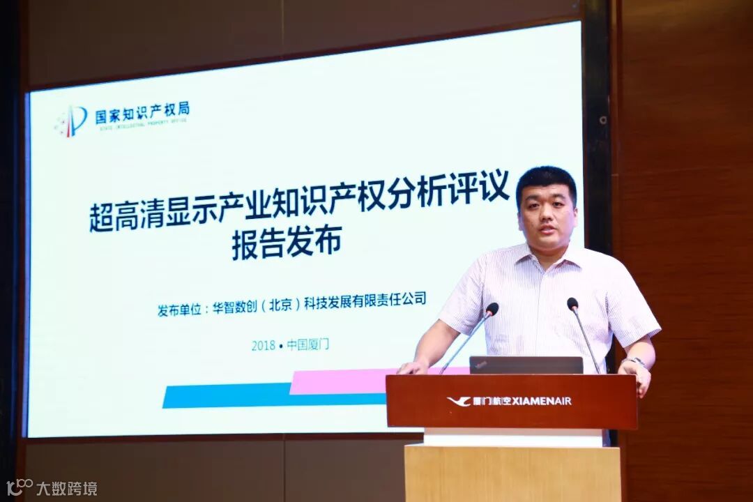 随后,华智数创发布了超高清显示产业知识产权分析评议报告。报告从发展路径、技术标准、产业链技术构成等多个角度对国内外超高清显示的产业状况进行分析,通过大量数据解读了当下国内和国际的知识产权环境,并从打造核心技术、提早进行专利布局、形成风险应对机制、参与标准制定等角度为企业和产业的发展提出了多个评议建议。