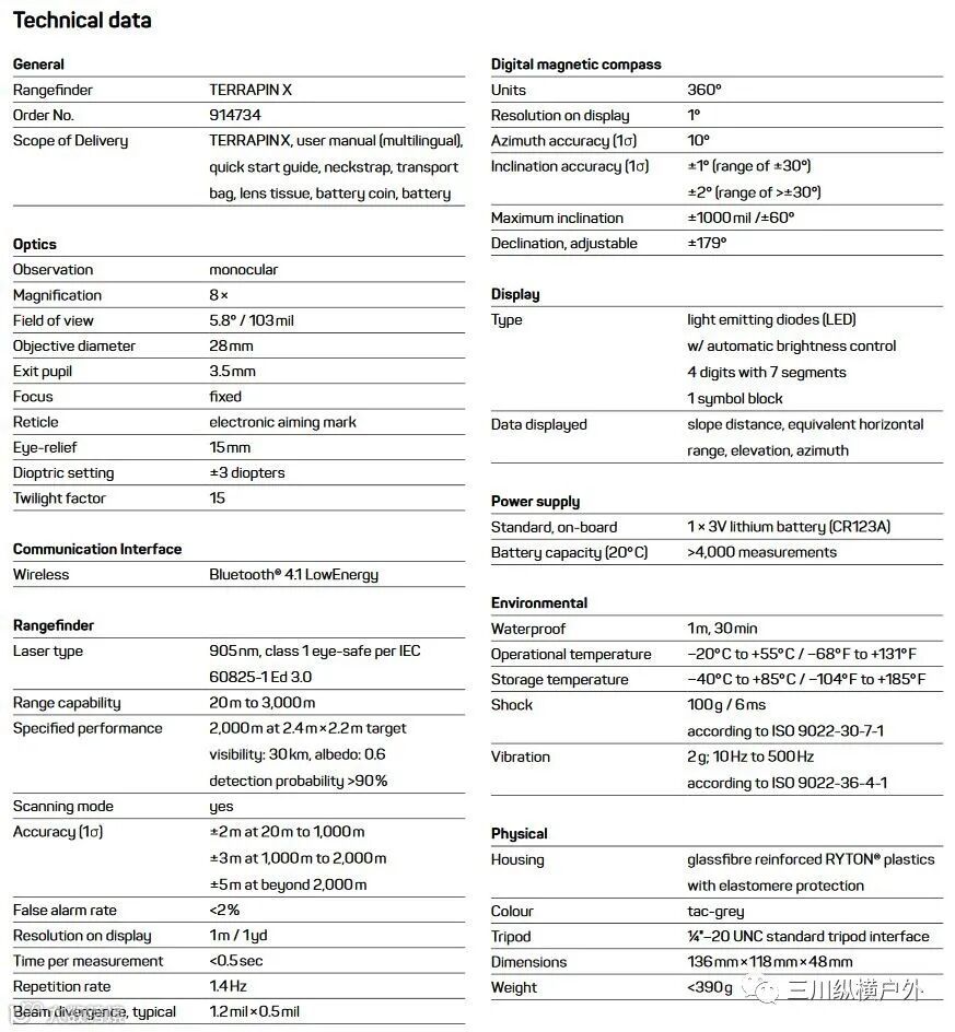 赛峰测距仪Safran Vectronix Terrapin X 产品参数