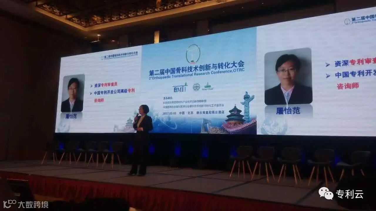 【2017年3月 中国·北京】近日,由“科技部生物医用材料产业技术创新战略联盟”、“中国医师协会骨科医师分会骨科技术创新与转化工作委员会”共同举办的“第二届中国骨科技术创新与转化大会”在北京举行,国内骨科专家、科研院校学者、跨界企业精英以及国内外著名医疗器械制造企业的首席研发专家共同为与会者提供了一场学术盛宴,覆盖了产、学、研、医不同领域。本次会议聚焦骨科领域新器械、新技术的临床转化过程,通过成功案例剖析创新转化关键环节。会上,中国专利技术开发公司、华智数创(北京)科技发展有限公司咨询总监屠怡范应邀进行了《专利预警与布局:提升专利含金量》的主题报告。