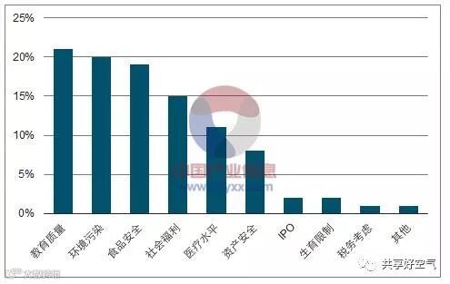 国民环保意识逐步觉醒。2013年特大雾霾事件的发生,正式引起了大众对这个无法回避的空气问题的讨论,2015年舆论达到高潮,民间开始自发组织环保活动,“绿色”、“环保”之类的词汇也更多的出现在了电视、电台和日常生活中。根据2015年对移民原因的调查数据来看,环境污染高居第二位,占比五分之一,人们对环保的重视程度可见一斑。