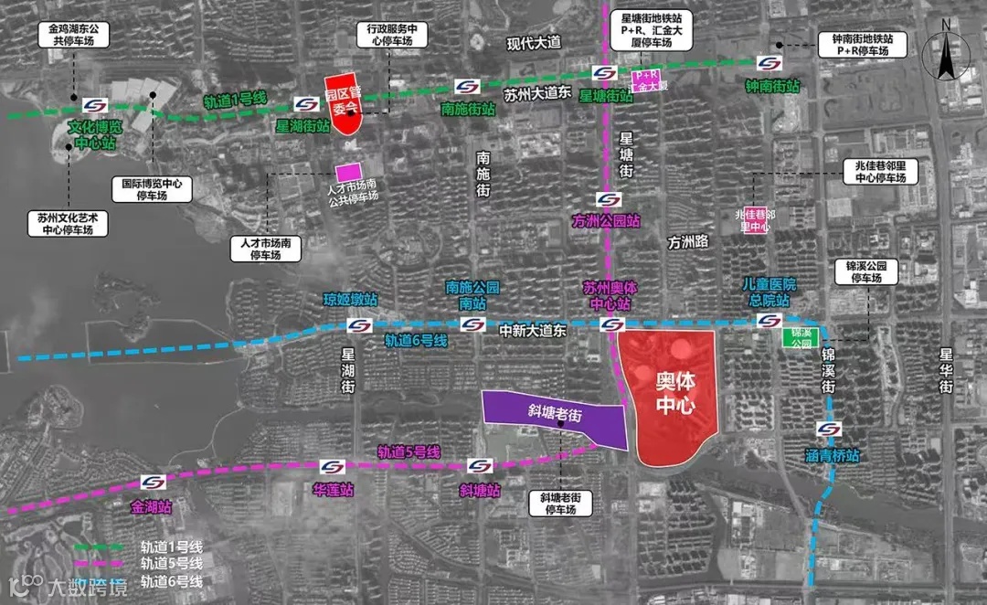 ● 线路:5号线、6号线直达“苏州奥体中心”站