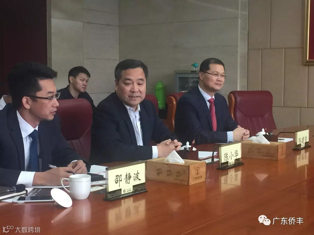 开业仪式前5月10日,广州市黄埔区区长、广州开发区管委会副主任陈小华会见那智不二越公司中国区董事长俵和之和广东侨丰董事长姚汉侨一行,鼓励双方在我区加快机器人产业应用示范基地布局,抢占机器人市场先机,开发区管委会秘书长陈建荣陪同会见。