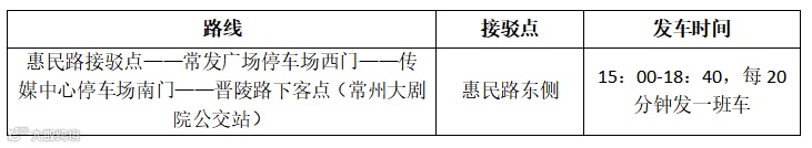 【散场】观众们可在惠民路接驳点乘坐免费接驳大巴,前往常州万豪酒店网约车上车点或传媒中心、新北万达、教育产业园等停车场。