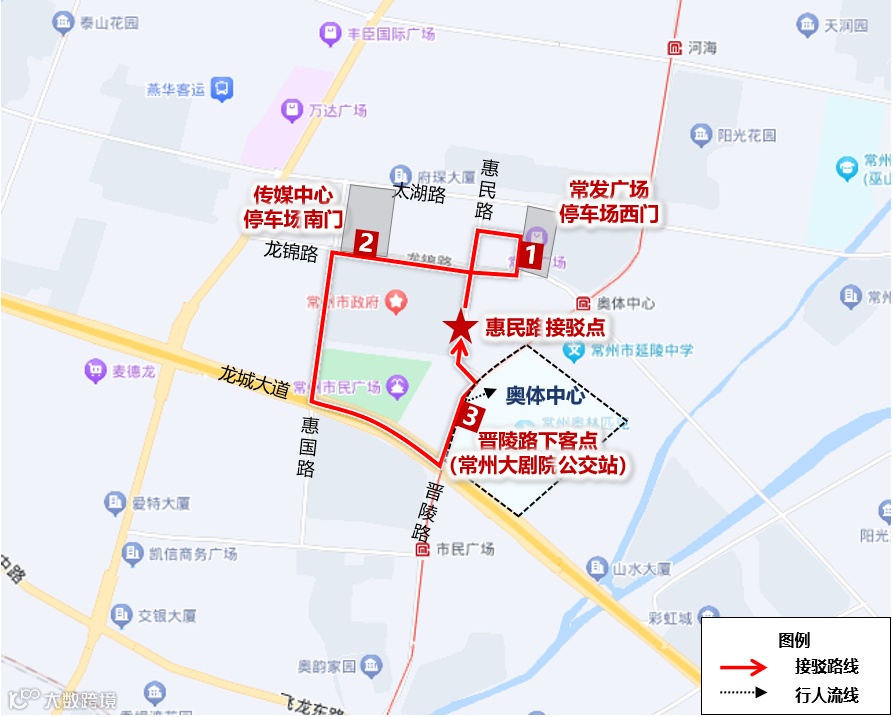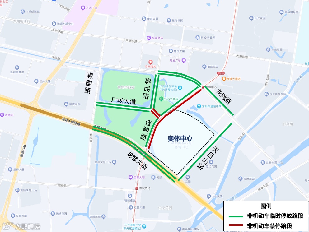*为保障散场秩序,散场期间,奥体周边惠国路—龙锦路—天目山路—龙城大道围合范围内(包含上述道路)以及晋陵路沿线(太湖路-锦绣路)限制使用网约车预约平台。