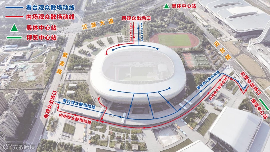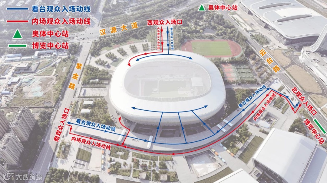 VIP3、VIP4、VIP7、VIP8、A3、A4、B3、B4区观众:建议从内场D号口进入(六号线·博览中心站1号口出站 步行距离最近)
