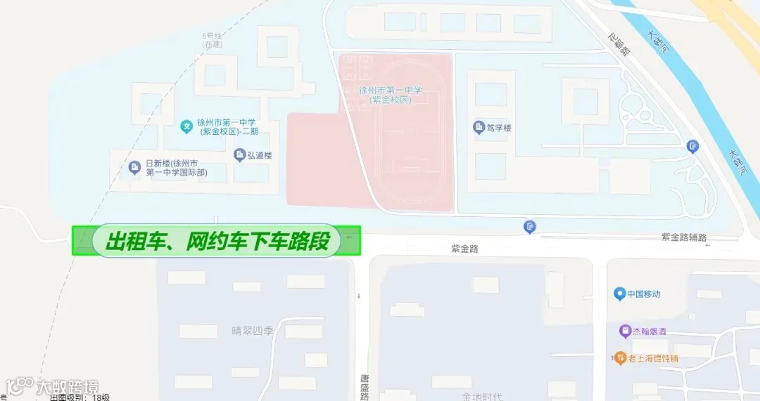 出租车、网约车接送乘客时,请行驶至紫金路徐州市第一中学南门后临时停车上下客。