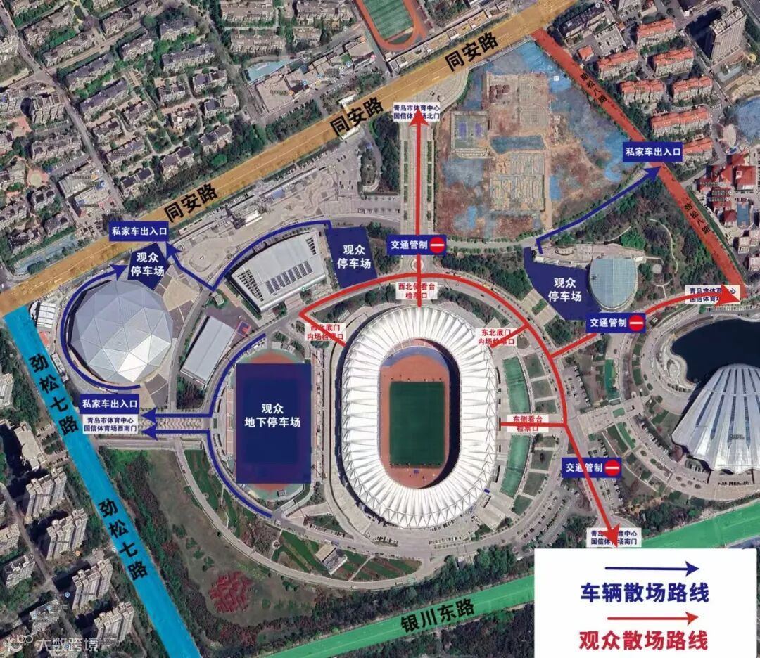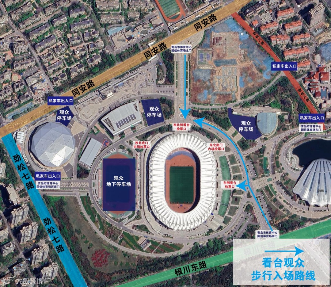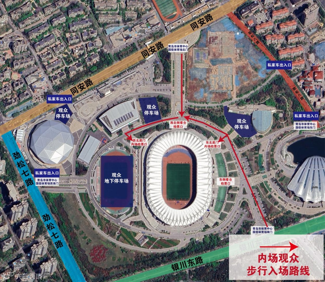 建议导航至【青岛体育中心国信体育场】,可至场馆内停车,但由于规划车位数量有限车位紧张,建议自驾观众提前规划好时间,有序停车入场。