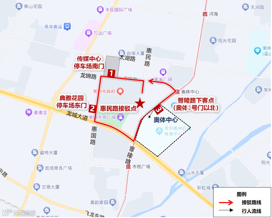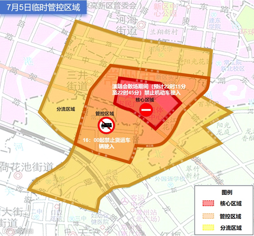 *为保障散场秩序,散场期间,奥体周边惠国路—龙锦路—天目山路—龙城大道围合范围内(包含上述道路)以及晋陵路沿线(太湖路-锦绣路)限制使用网约车预约平台。