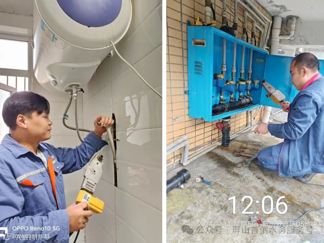 人来人往的步行街,彩灯高挂,年味十足。首创公司维修班组的师傅们拿着供水维修专用工具,正在给上、下台地的供水设施做着“体检”。在常人看来,这些供水设施并没有什么不同,但在维修师傅眼中,他们每天主要的工作就是在供水设施中“找茬”:深埋地下的管网是否有暗漏,供水设备有没有破损,是否被占压或遮挡,消防栓是否可以正常启用。维修师傅们分地块、分乡镇,加强每日巡检,抢修队24小时待命,确保每一个供水设施都健康“在岗”。