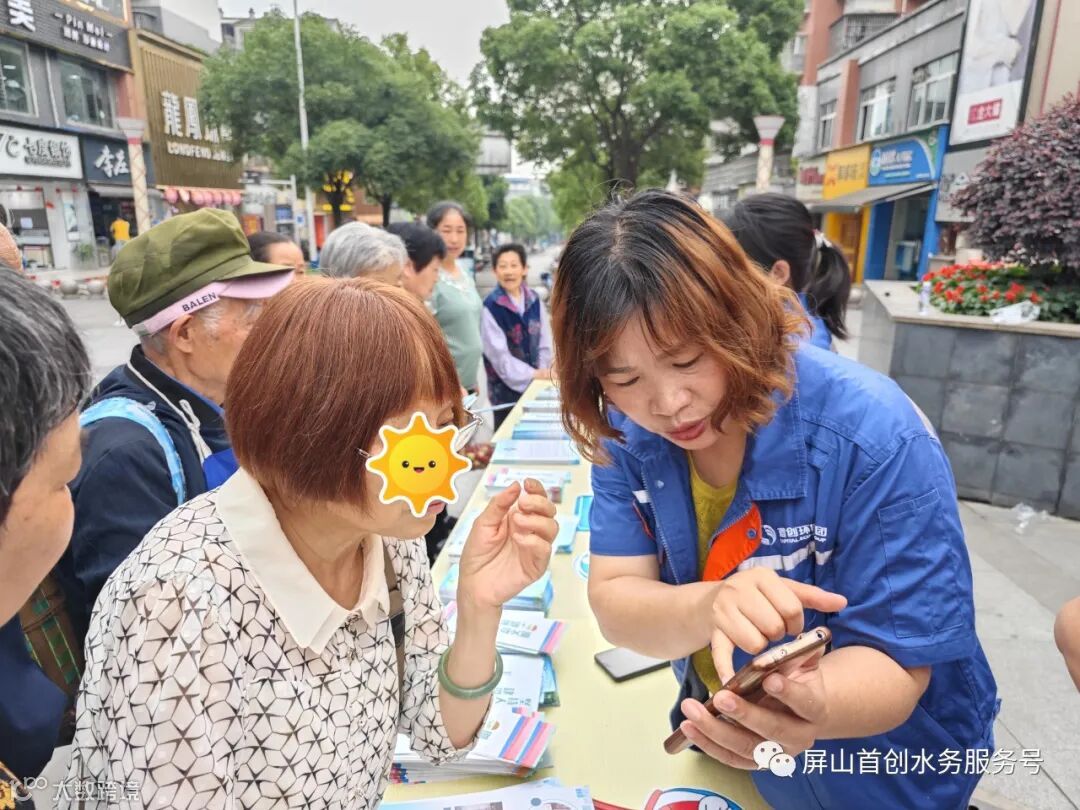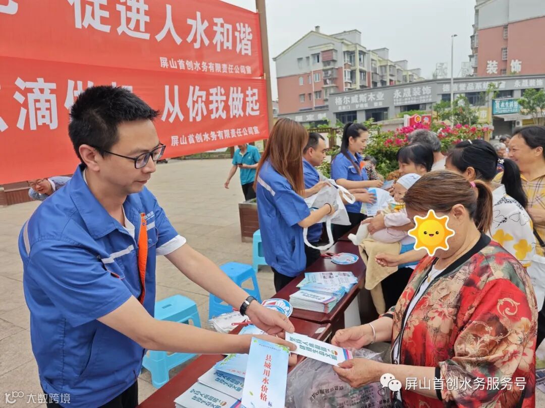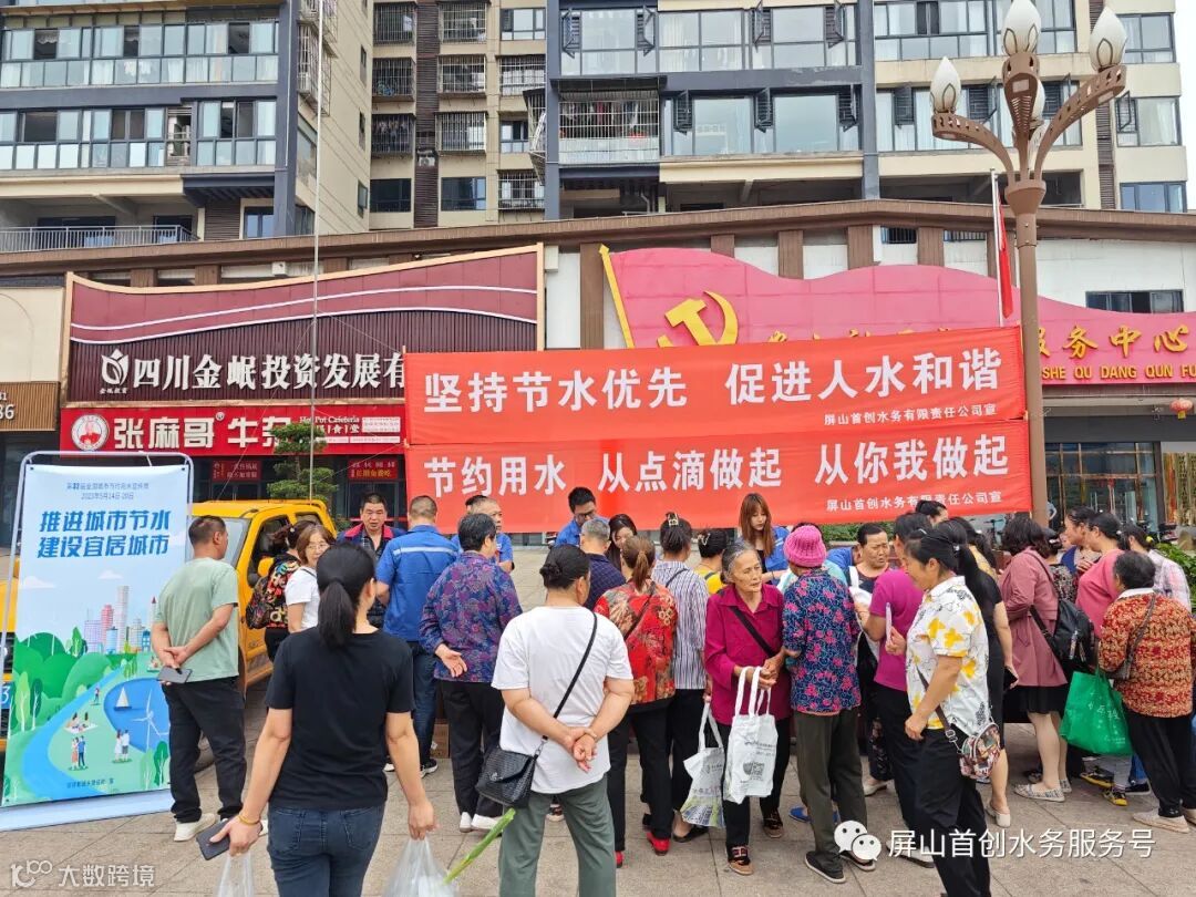5月17日上午,屏山县住建局、屏山首创在安上社区服务中心和步行街联合设置宣传点位,同步展开节约用水宣传活动。