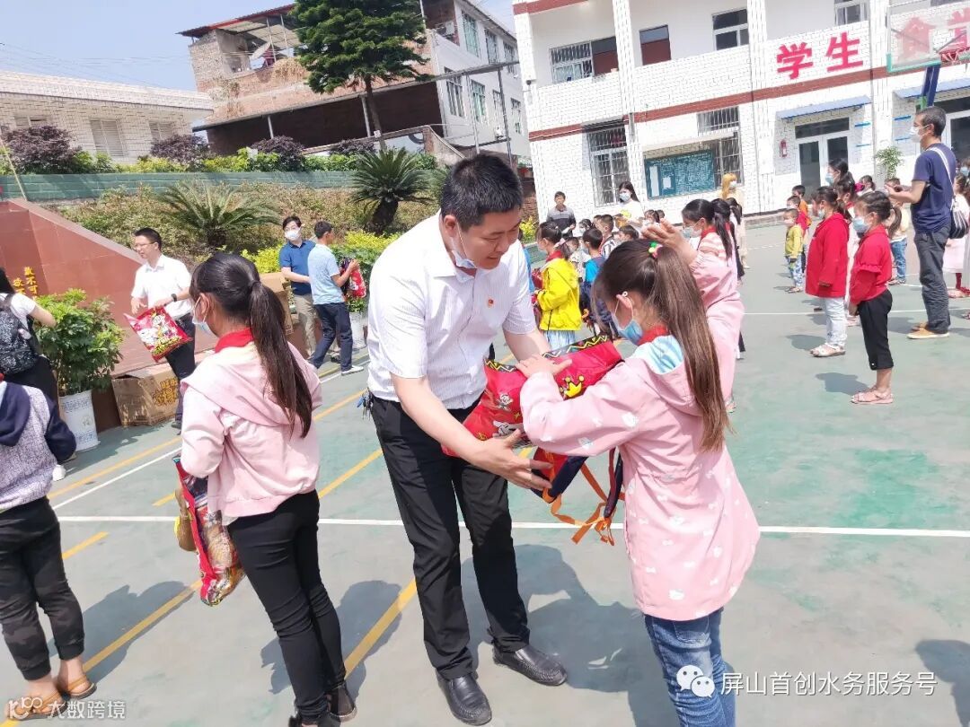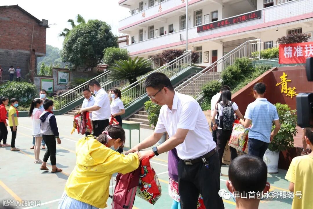 5月15日,屏山首创党支部书记、总经理徐旭同志带领班子成员走进屏山县锦屏镇青华基点校,为该校130名贫困儿童学生送去价值1万余元的助学器材及饱满的国企关爱情意,并在当地以“以购代捐”的形式向在册贫困户购得肉猪一头。