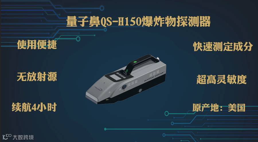 量子鼻QS-H150便携式爆炸物探测器无放射性污染源,具有操作简便、探测准确、灵敏度高,重量轻的特点,能够尽快确定爆炸物成分,为爆炸物处置提供方向。