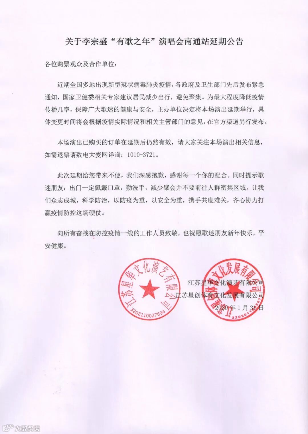 演唱会将延期举行