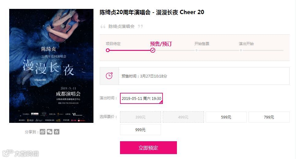 漫长的等待后,成都演唱会将于4月12日(明日)正式开票。这意味着在预售环节已经支付票款的歌迷,即将拿到心仪的门票。