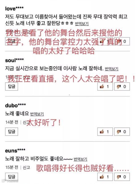 还有韩网友称歌声好,人也帅,是华语歌手的荣耀。随后还上了韩国热搜第一位。