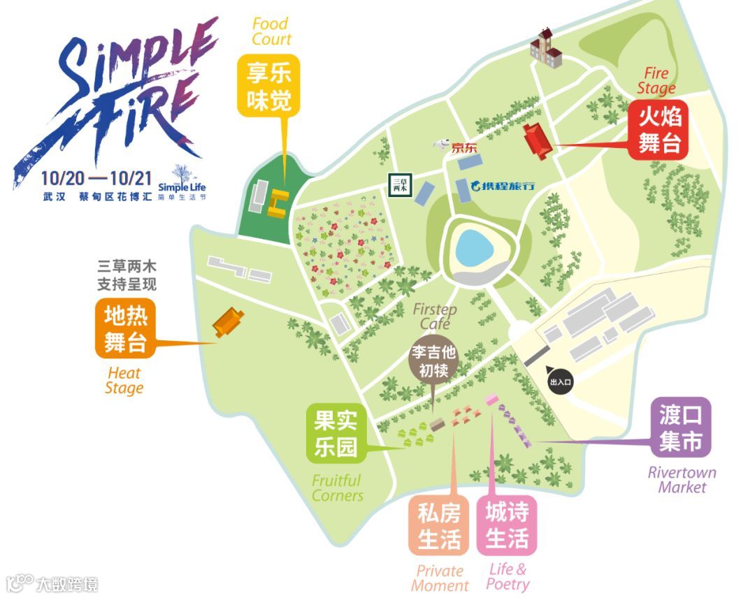 同时,活动现场有一处与草地鲜花融为一体的“水光森林”,由自然系护肤品牌三草两木打造,跟着简单生活节一路来到了武汉,清新自然的感觉吸引了不少目光。以“水”为概念的三草两木,就诞生于如“火”般热情的武汉,在现场,除了原有的“水光森林”与“童年记忆站”展区,三草两木本次特别支持呈现了武汉简单生活节的地热舞台,以绿色作为主色调的地热舞台,象征人与大地和谐共处,自然、纯粹的生活状态,将三草两木与简单生活的理念做了完美呈现。在另一侧的策展区,品牌还在这里打造了“佛系零售店”,里面挂满超过30款不同的手绘佛系签语,以三草两木的自创字体—“传美体”写下心灵小语,希望带给在当代生活中迷惘或焦躁的青年们一些安慰。
