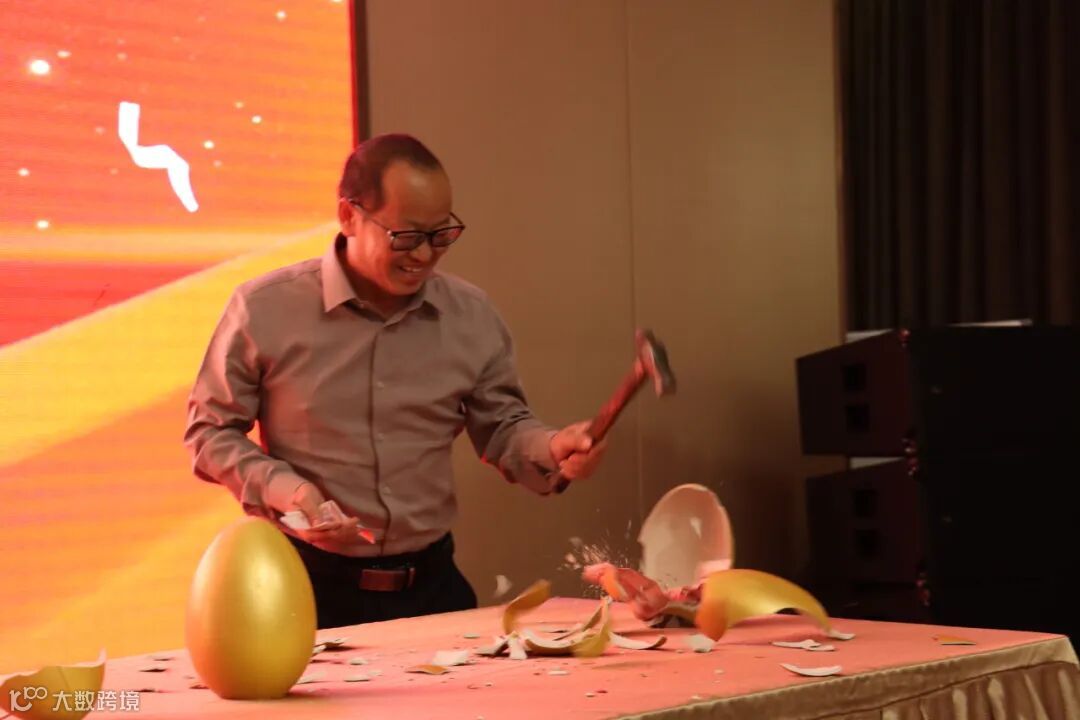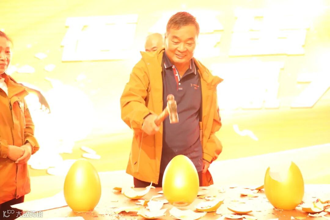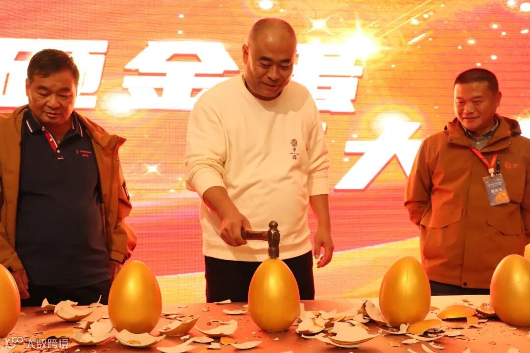 随后迎来了一个轻松愉快的活动环节——砸金蛋·赢大奖。多位经销商手持金锤,满怀激动地站在金蛋前,用力一击,瞬间金花四溅、惊喜连连。此次砸金蛋活动不仅是对经销商们的一种奖励,更是对他们长期以来支持新长山集团、共同推动品牌发展的肯定和鼓励。