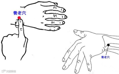手指触摸此部分,可摸到裂缝,养老穴就在裂缝中。每天早晚各指压 10 次至 20 次即可,这样反复指压,3 个月左右,穴位的疼痛感就会消失,眼疾也会慢慢得到缓解。