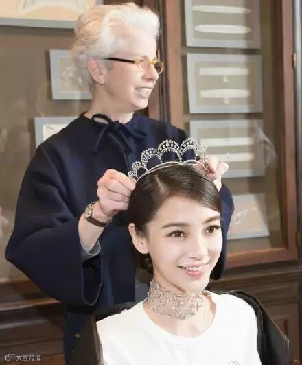 而在今晚的婚宴上,baby佩戴的皇冠也是出自CHAUMET,下图是造型师在为baby试戴皇冠。