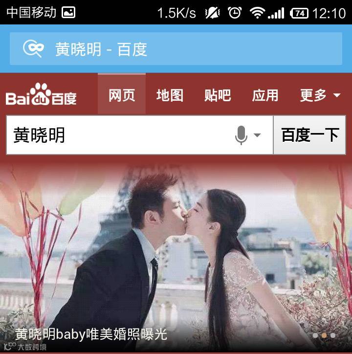 早晨,小编就知道今天一定会被ah婚礼刷屏,所以想要提前搜索一下相关消息。结果在手机百度搜索里输入关键词#黄晓明#时,赫然出现了这样的界面——