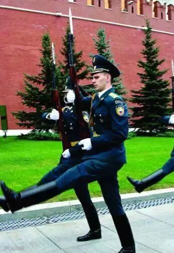 当然,后来的阅兵步经过各国改良或者变化,已经有了很大的变化。最接近原始“鹅步”的正步据说是德国军队采用的。