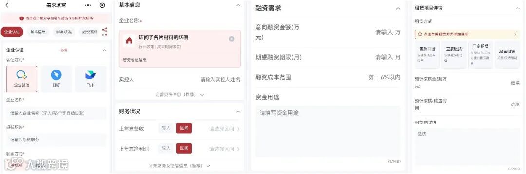我的线索-新增 邀请融资企业填写需求快评表:可为通过“征途”揭榜加入的客户明确其需求信息,客观判断线索转商机节点。