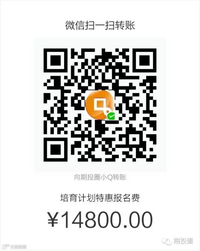 长按并识别下图二维码即可在线支付“ 14800元”报名费用,转账时请备注:真实姓名+手机号码+培育计划。
