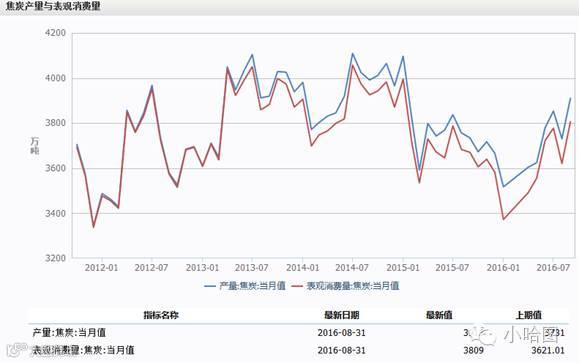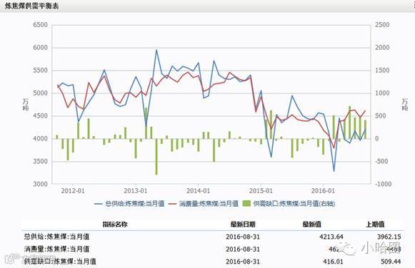 先看下焦煤的供需平衡表,自今年煤炭276个工作日实施以来,焦煤的产能释放被妥妥的限制住了,减产立马见效,但需求却大大改善,所以便出现每个月500万吨左右的供需缺口,而这正是焦煤疯涨的最简单粗暴的支撑。