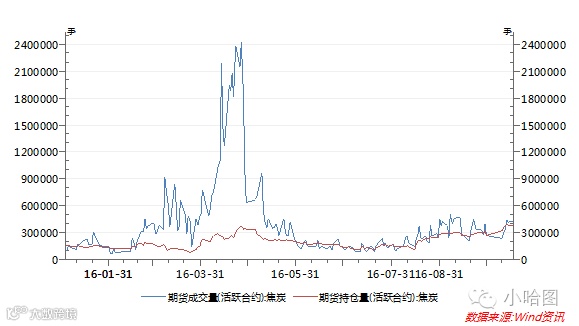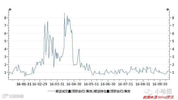 最后,再来看下双焦期货的投机问题,相比4月份天量的交易量,现在双焦这点量还是很温柔的,焦炭成交量和持仓量的比值也处在正常水平。