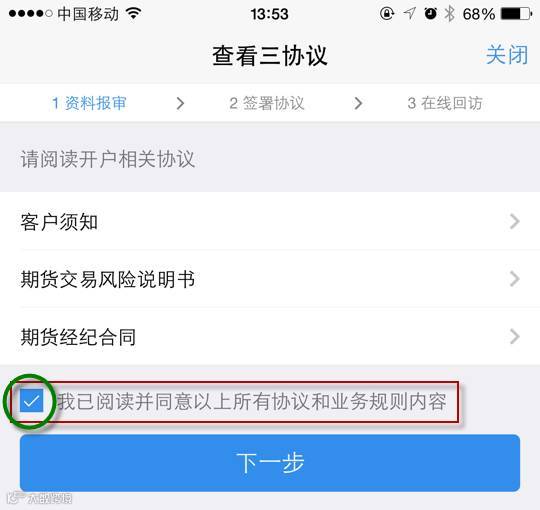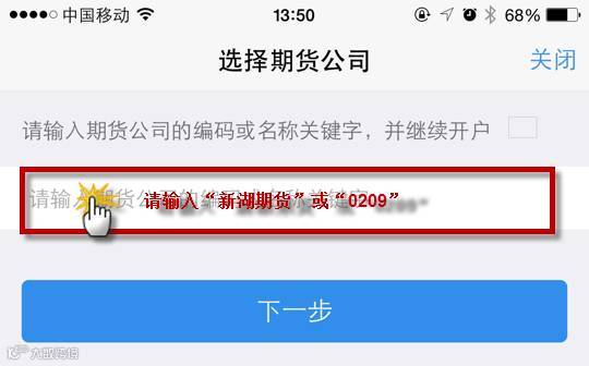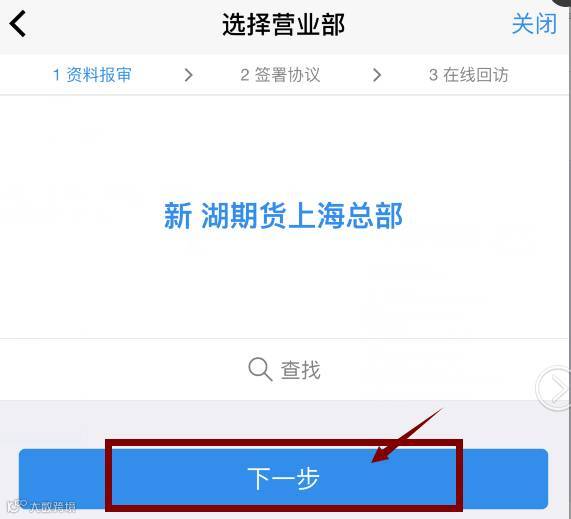 营业部选择【请务必选择新湖期货上海-总部】并点击下一步;