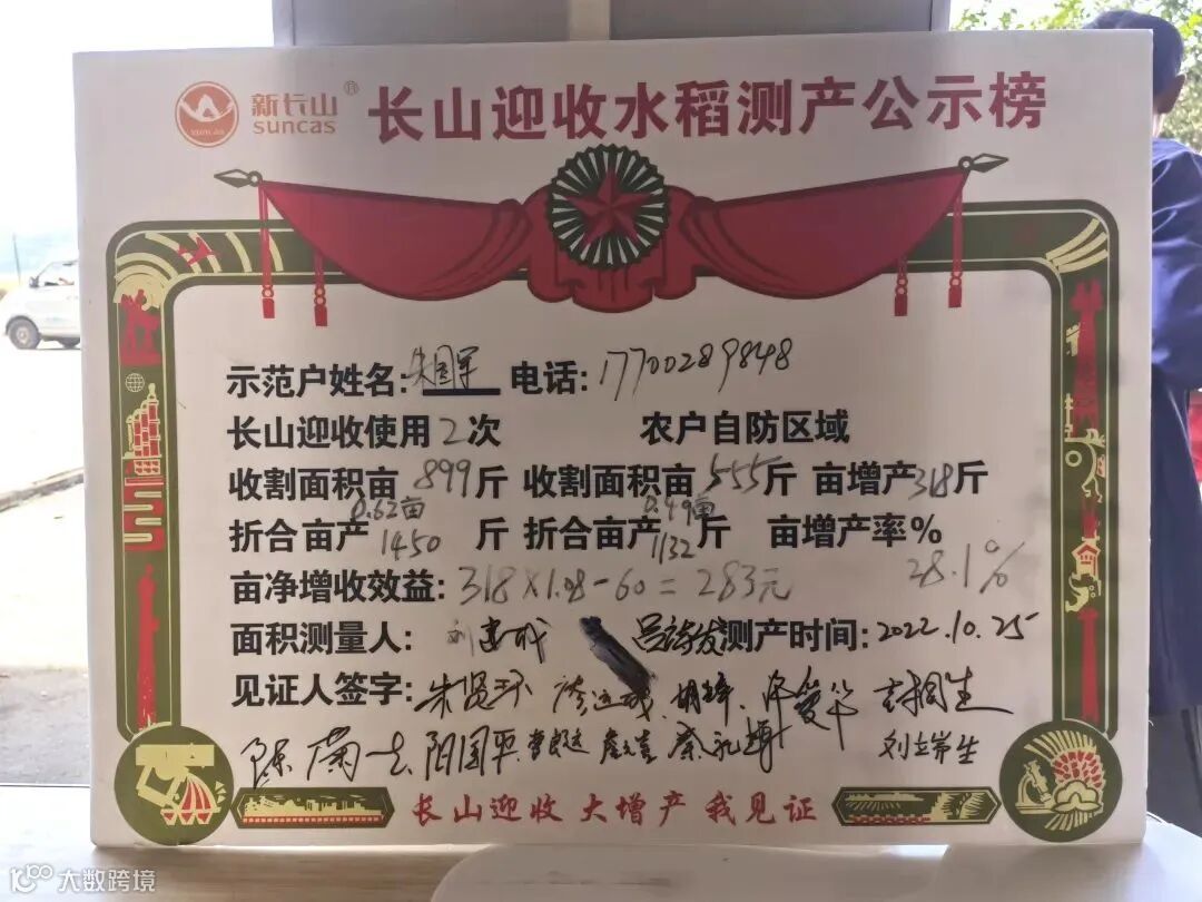 近日,在常宁市罗桥镇的田野上有一群种植大户一起见证了一个神奇的增产故事——长山迎收®的测产观摩会。