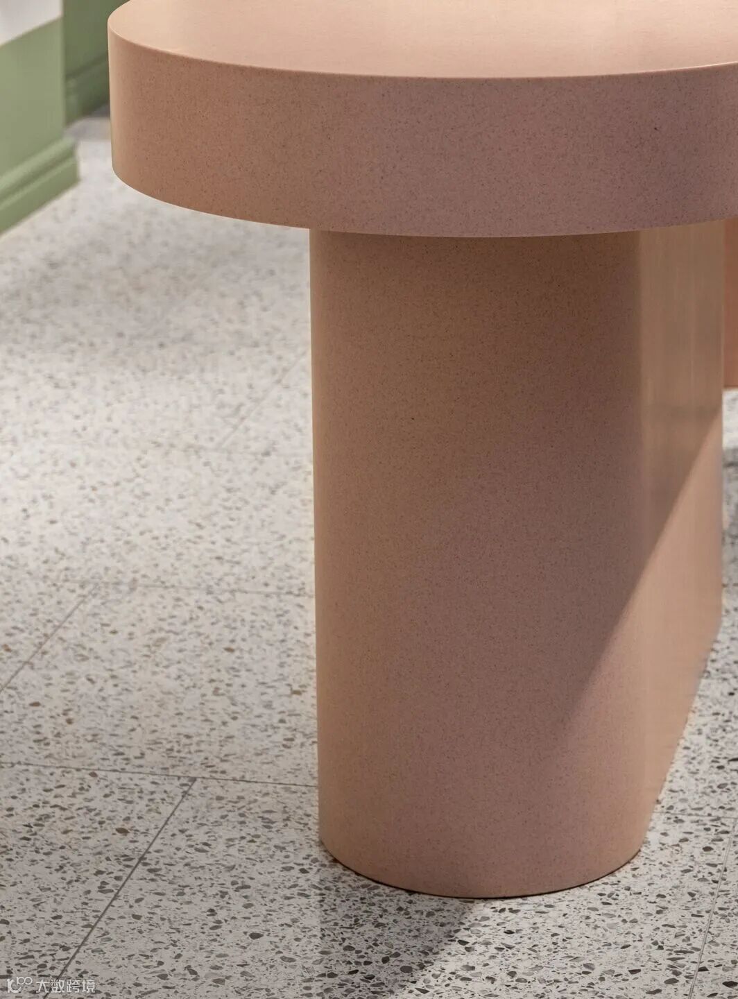 两层之间的过渡是通过台阶完成的,从墙的一边延伸到另一边。过渡点的现有柱子被围上了钢隔板,作为临时的内部立面。 The transition between the two levels is made through steps, extending from one side of the wall to the other. The existing column at the transition point was enclosed in a steel partition, which functions as an interim internal façade.