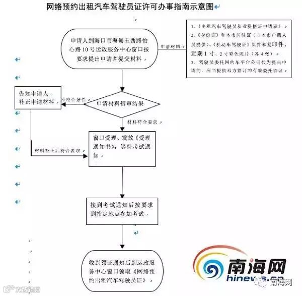 一、申请人到海口市海甸五西路怡心路10号运政服务中心窗口领取或登录海口市人民政府公共服务平台网站下载网络预约出租汽车驾驶员证许可申请表,按要求填写申请表,向窗口提交如下申请材料: