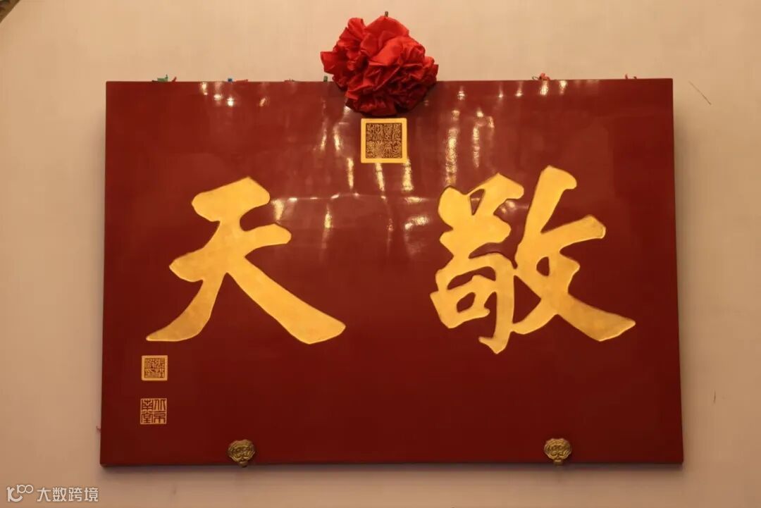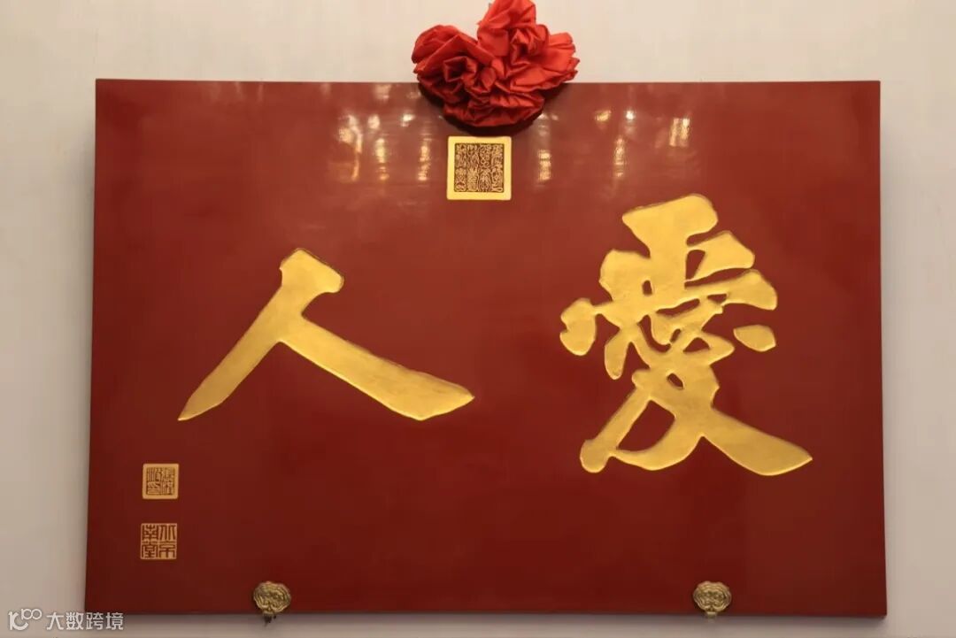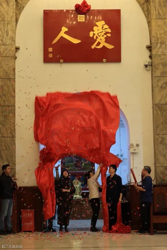 又一段深情朗诵后,《爱的真谛》旋律轻柔流淌,“爱人”牌匾在音乐声中缓缓展露真容,与“敬天”匾额相映成辉。