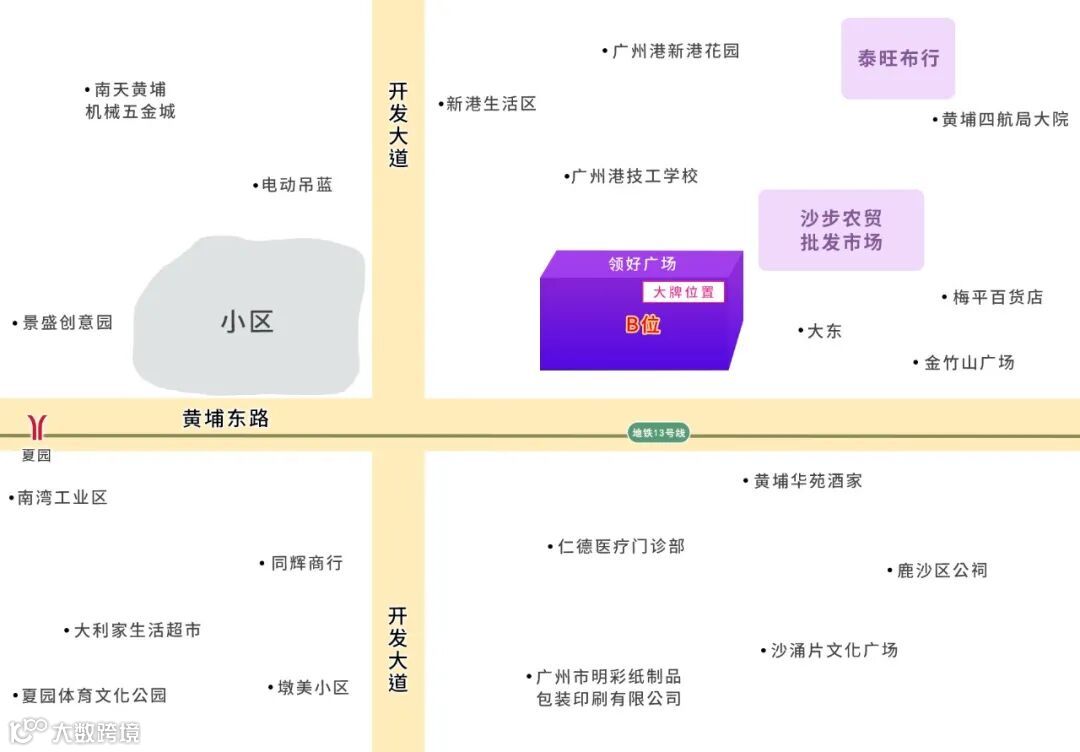 该广告牌位于领好广场位于广州市黄埔区黄埔东路2889号,营业面积约30000㎡,