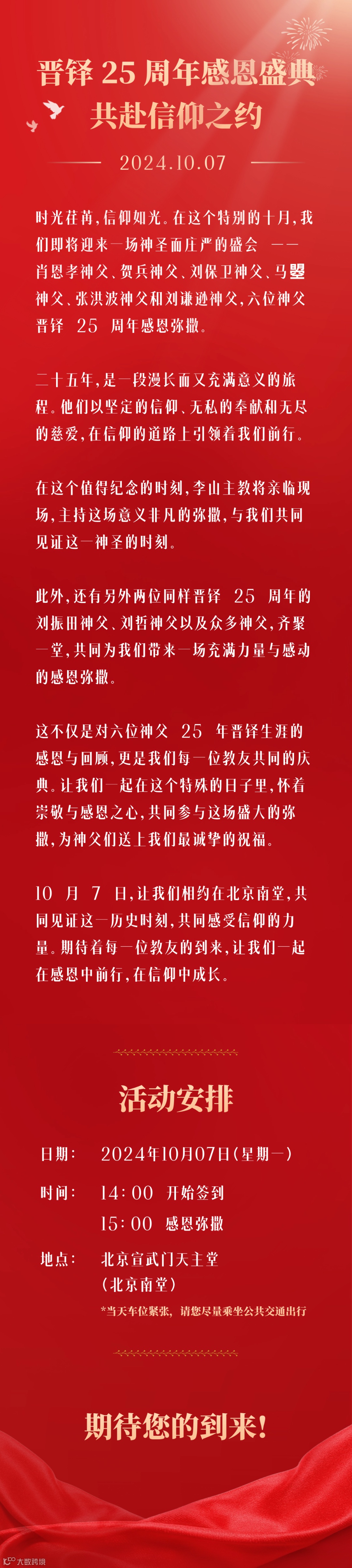 【堂区通知】感恩弥撒 | 庆祝晋铎二十五周年