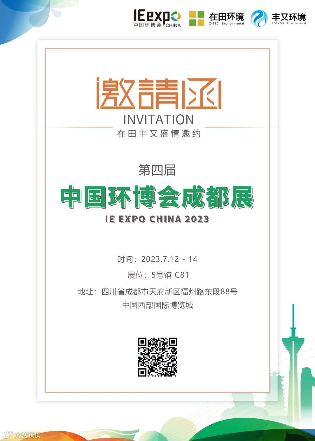 2023年7月12~14日,第4届中国环博会成都展将在成都西部国际博览城盛大举办。本届展会将紧抓新一轮环保行业发展趋势,继续扩大品牌交流及资源整合优势。拥有4万平方米超大展示规模,将吸引来自全国400家知名企业,超过3万人到场参观,展品覆盖水、固废、大气、土壤等全产业链,同期将举办“1+N”场行业高端论坛,供到场嘉宾交流学习,拓展合作机会。其中,“西部地区村镇水环境系统解决方案”和“高盐难降解工业废水减量化技术”是本届论坛的热点。
