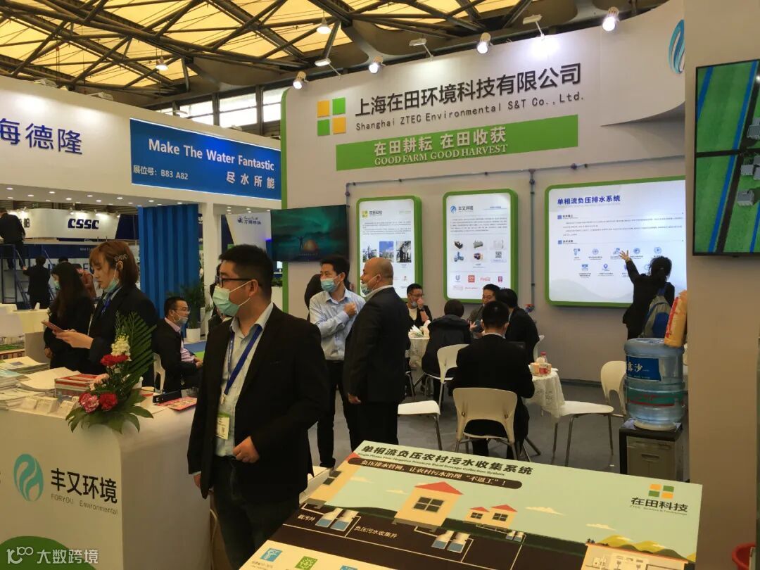 在田环境展台人头攒动,人流如织,自主研发的单相流负压排水系统,引起观展者的围观驻足。